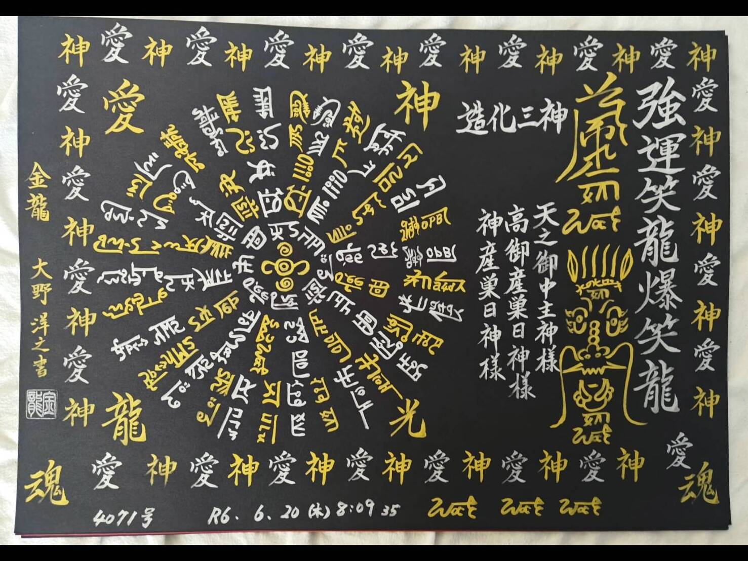 龍体文字開運師 大野洋之による作品番号4071号『造化三神 天之御中主神様 高御産巣日神様 神産巣日神様』